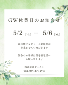 ご不便をおかけしますが、下記の期間をGW休業とさせていただきます。